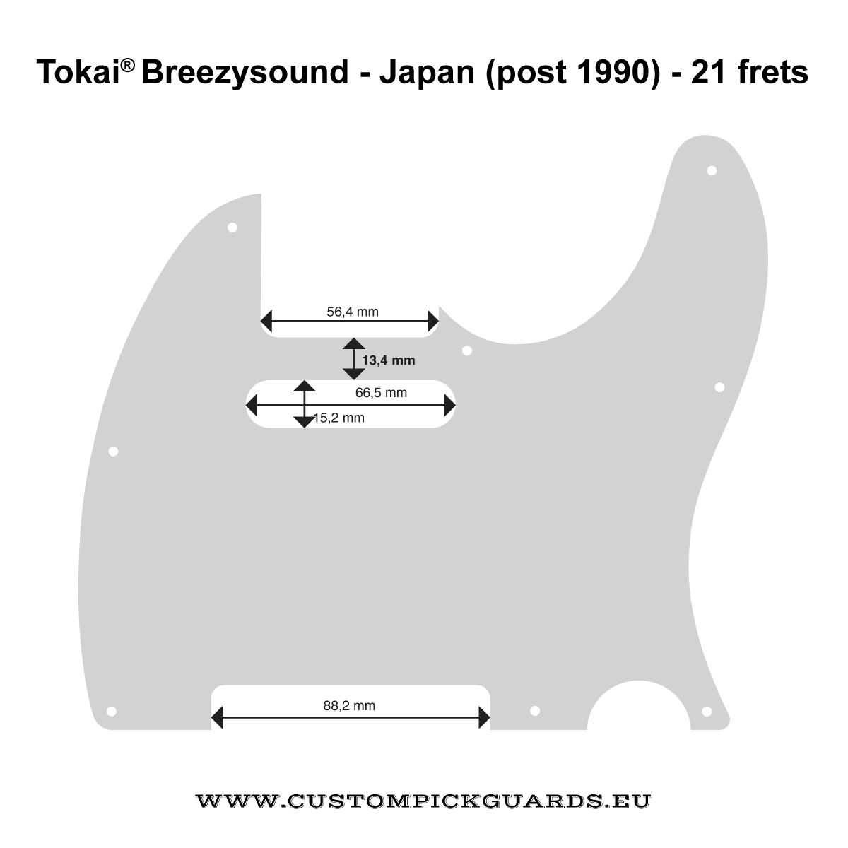 A replacement pickguard that fits Tokai® Breezy Sound guitars, made in Japan from the 90's onwards.